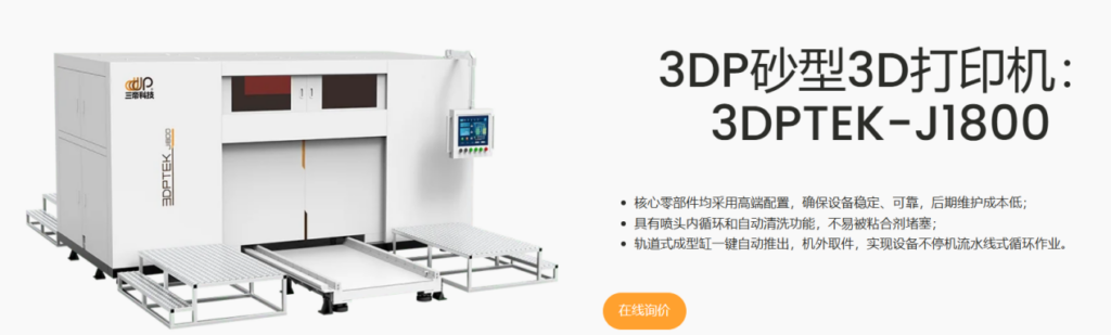 無砂箱3D 打印機與鑄造廠的融合不斷深化,企業(yè)通過并購鑄造廠等方式,打通 “3D 打印 + 鑄造” 工藝,提供全產(chǎn)業(yè)鏈整體解決方案,推動鑄造行業(yè)向綠色、智能、高端方向發(fā)展.