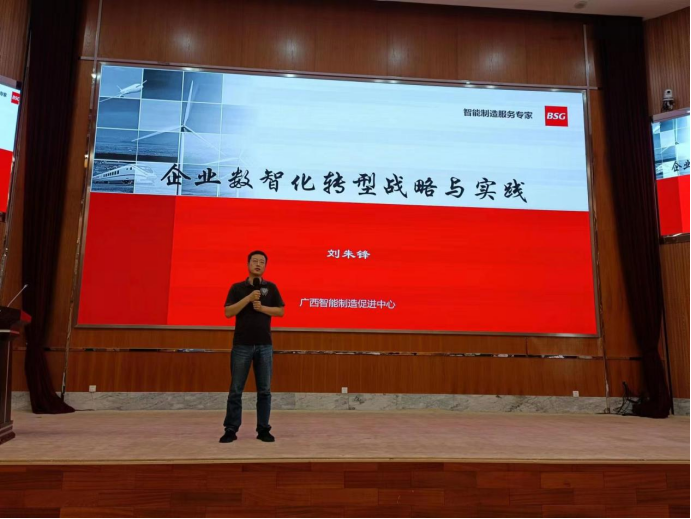 研修の中で、劉柱峰氏は「新時(shí)代の文脈における企業(yè)のデジタル建設(shè)」をテーマに、新時(shí)代のチャンスと課題を共有し、同時(shí)に、近年実施された関連成功事例と組み合わせて、企業(yè)のインテリジェント製造業(yè)の転換とアップグレードの重要な能力と道筋について詳しく説明した。彼は、広西チワン族自治區(qū)の中小企業(yè)の転換とアップグレードは、企業(yè)の核心競爭力を強(qiáng)化することに資するものでなければならず、インテリジェント化アップグレードは、インテリジェント設(shè)備一式と自動(dòng)化ソフトウェア一式を購入すれば達(dá)成できるものではないことを思い出した。