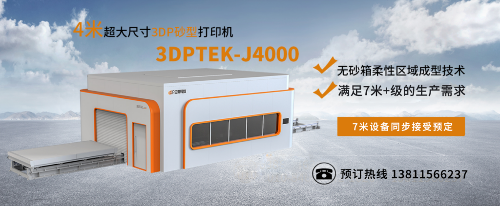 在制造業(yè)中,大尺寸鑄件的制造一直是行業(yè)面臨的難題。傳統(tǒng)鑄造方式制作大尺寸鑄件,技術(shù)難度大,制作流程繁瑣,給制造商帶來了諸多困擾。針對這一現(xiàn)狀,三帝科技自主研發(fā)的4米超大尺寸3DP砂型打印機為行業(yè)提供了新的解決方案。該設(shè)備突破傳統(tǒng)加工尺寸限制,采用無砂箱柔性區(qū)域成型技術(shù),支持局部打印,最大可成型4米的砂型,從而完成大尺寸、復(fù)雜結(jié)構(gòu)鑄件的一體鑄造,極大地提高生產(chǎn)效率和鑄件質(zhì)量。更重要的是,該設(shè)備極具性價比,在實現(xiàn)高效、精準(zhǔn)成型的同時,其售價僅為2米+設(shè)備的價格,可經(jīng)濟(jì)高效地實現(xiàn)超大尺寸的砂型制造(7米設(shè)備同步接受預(yù)定)。此外,公司還有1.6米、1.8米等3DP砂型打印機方案可供選擇,滿足不同尺寸的砂型打印需求;同時提供開源材料工藝,可針對用戶按需調(diào)整;配套高性能樹脂粘結(jié)劑、固化劑、清洗劑,保證成型質(zhì)量和穩(wěn)定性。