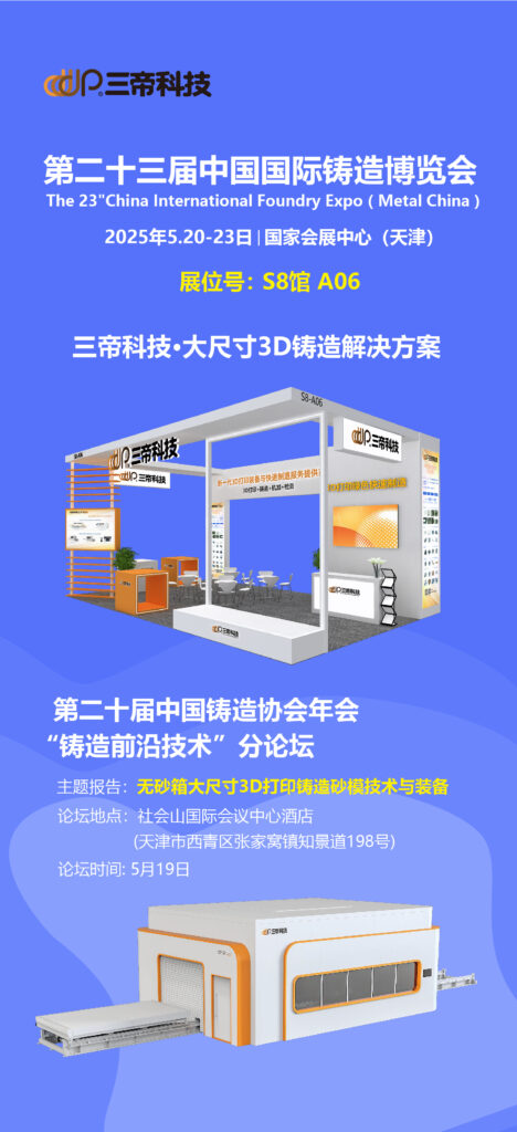 三帝科技大尺寸3D鑄造解決方案將登陸中國(guó)國(guó)際鑄造展最先出現(xiàn)在三帝科技股份有限公司。