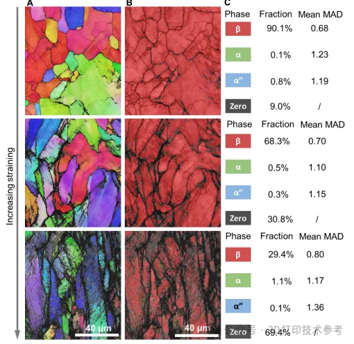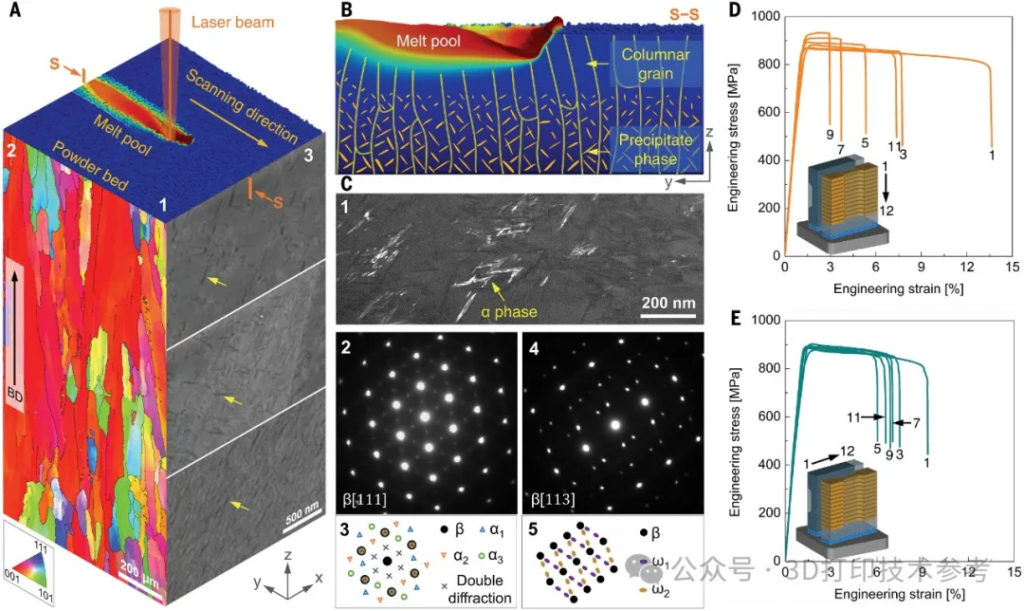 研究背景在金屬3D打印過(guò)程中,經(jīng)常會(huì)出現(xiàn)粗大的柱狀晶粒和不均勻分布的相,導(dǎo)致機(jī)械性能不均勻甚至較差。研究涉及一種設(shè)計(jì)策略,可直接通過(guò)3D打印獲得高強(qiáng)且性能一致的鈦合金的方法。研究表明,在粉末金屬混合物中添加鉬(Mo)增強(qiáng)了相穩(wěn)定性,并提高了3D打印合金的強(qiáng)度、延展性和拉伸性能的均勻性。Science同期評(píng)論文章指出,該方法有望應(yīng)用于其他粉末混合物,并能夠定制具有增強(qiáng)性能的不同合金。